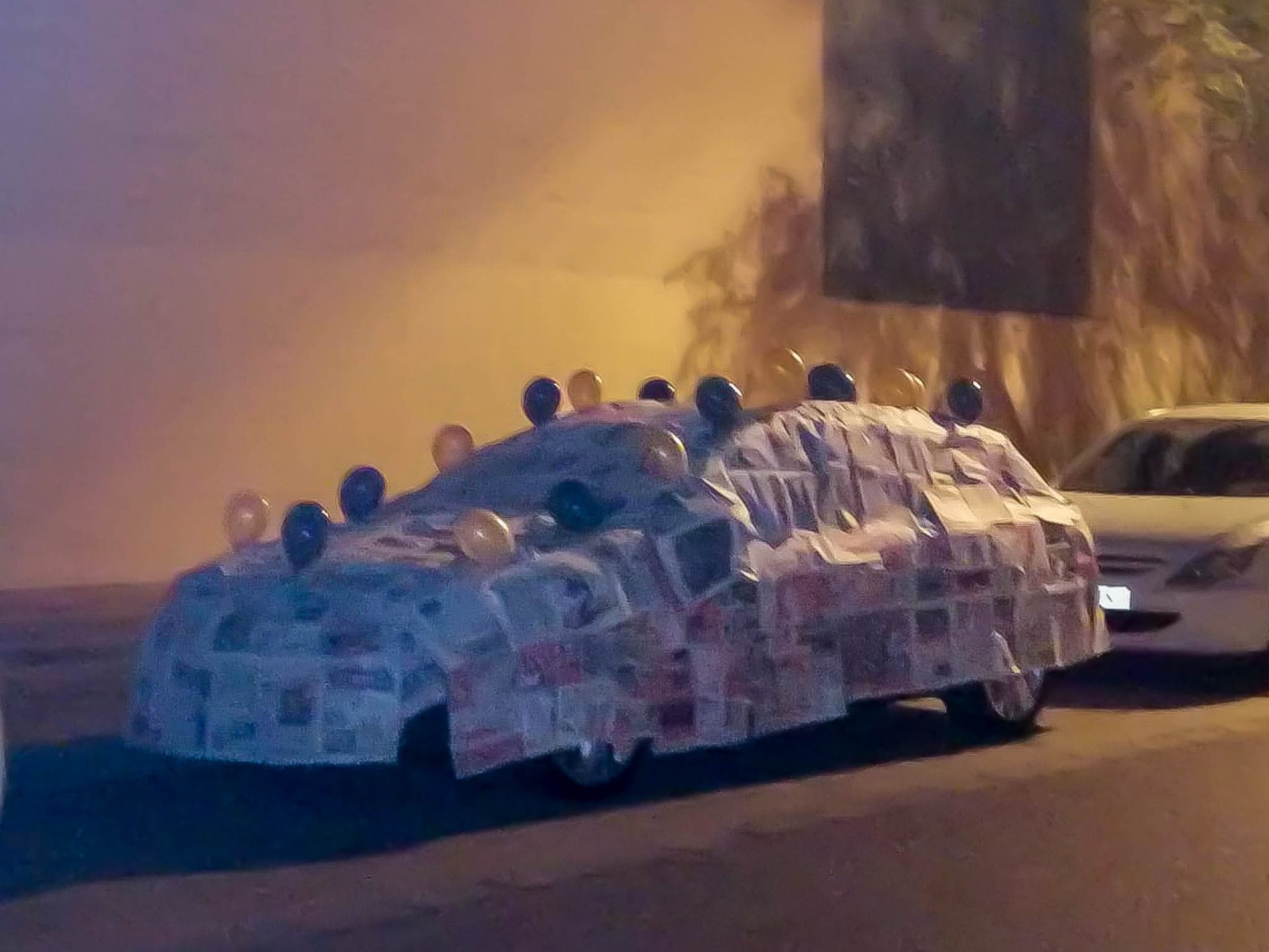 Los causantes de ‘empapelarles’ el coche nos han contado lo divertida de la acción, así como que generó suspicacias entre quienes estaban por la zona en ese momento, tanto que la Policía estuvo para interesarse por su acción, pero todo quedó en la anécdota.