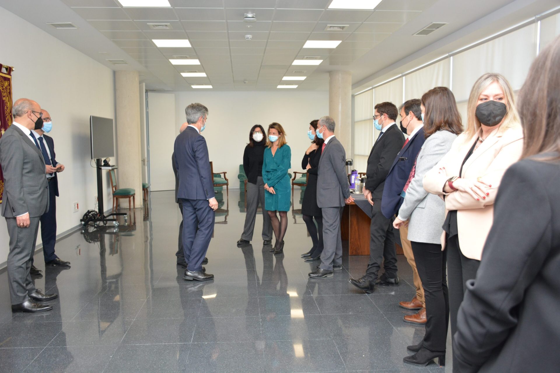 El presidente del Tribunal Supremo y del Consejo General del Poder Judicial, Carlos Lesmes, ha visitado este jueves la nueva Ciudad de la Justicia de Albacete, donde ha realizado un recorrido por sus instalaciones y mantenido un encuentro con los miembros de la Carrera Judicial destinados en órganos judiciales de la provincia. Acompañado por el presidente del Tribunal Superior de Justicia de CastillaLa Mancha, Vicente Rouco; por varios miembros de la Sala de Gobierno y por el juez decano de los Juzgados de Albacete, Pedro Benito López Fernández; el presidente del órgano de gobierno de los jueces ha visitado, entre otras dependencias, una sala de vistas, el Registro Civil, el Instituto de Medicina Legal, la sala Gesell, las oficinas del Juzgado de Guardia y de los Juzgados de lo Penal y la Fiscalía. Lesmes no pudo asistir el pasado 21 de enero al acto de inauguración oficial de la Ciudad de la Justicia, que presidió Su Majestad el Rey, al haber resultado positivo por COVID-19 en una prueba diagnóstica unos días antes.