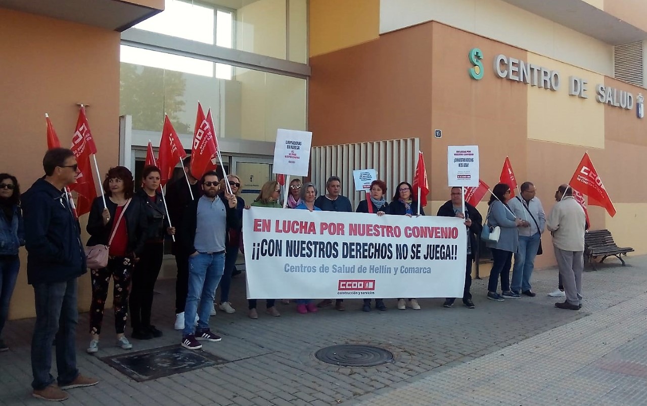 Las nueve trabajadoras de la limpieza de los centros de salud de Hellín y su comarca (Tobarra, Isso y Nerpio) han iniciado hoy seis días de huelga por su convenio colectivo.