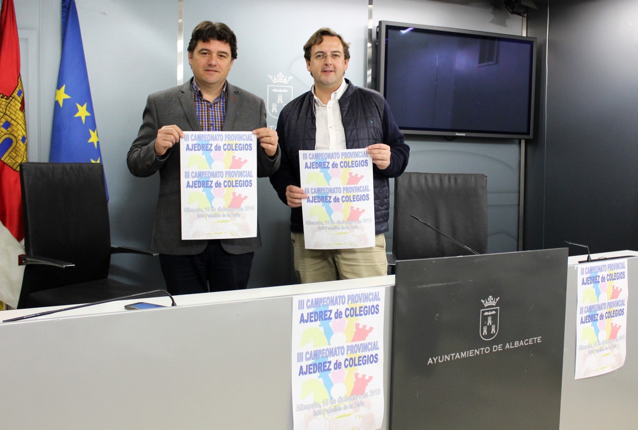 El concejal de Deportes, Francisco Navarro, ha presentado en rueda de prensa el III Campeonato provincial de Ajedrez por equipos de colegios que tendrá lugar este sábado, día 15, a partir de las 9:30 horas, en el Pabellón de la Feria, acompañado por el presidente de la Federación de Ajedrez de Castilla-La Mancha, Justino López.