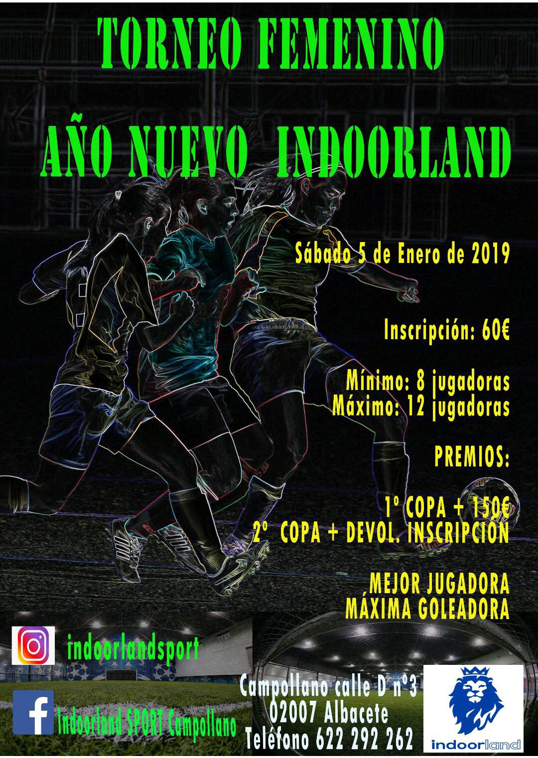Indoorland organiza el Trofeo Femenino Año Nuevo de Fútbol Sala. Será el sábado 5 de enero de 2019. Habrá premio para los dos primeros equipos, así como a la mejor jugadora y la máxima goleadora.