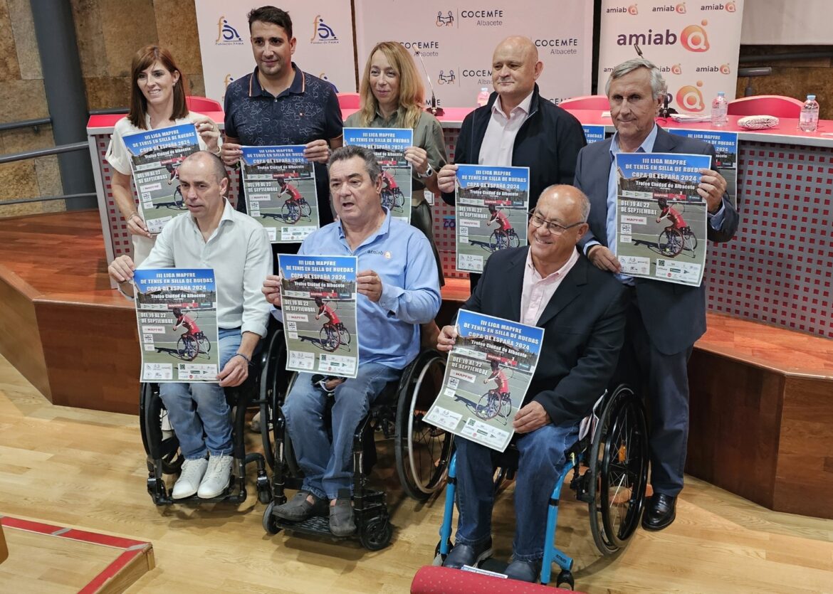 En la mañana de hoy se presentado en las instalaciones del Cetro Infanta Leonor de Cocemfe Albacete la décimosexta edición del Trofeo Ciudad de Albacete de Tenis en Silla de Ruedas, prueba puntuable para la Liga Nacional Mapfre de Tenis en Silla de esta disciplina deportiva. El acto ha contado con la presencia del concejal de deportes Francisco Villaescusa, el Diputado de Deportes, Daniel Sancha, Marcelino Escobar, presidente de Cocemfe Albacete, Jose Carlos Jurado y José Luis Povedano, directivos de Amiab, Ana Lourdes Valero, Gerente del IMD, la Presidenta del Club Tenis Albacete, Vanesa Serrano y el director deportivo del club, Julián García.