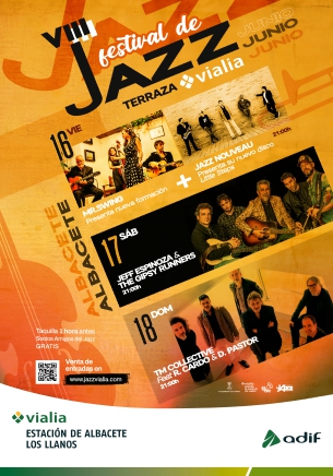 La estación de Adif vialia Albacete Los Llanos será un año más el escenario de ‘Festival de Jazz Terraza Vialia’, que celebra su octava edición durante el próximo fin de semana. Esta cita cultural mantiene su habitual esquema basado en tres pilares: grupos locales relevantes, artistas internacionales de prestigio y formaciones nacionales con gran trayectoria.