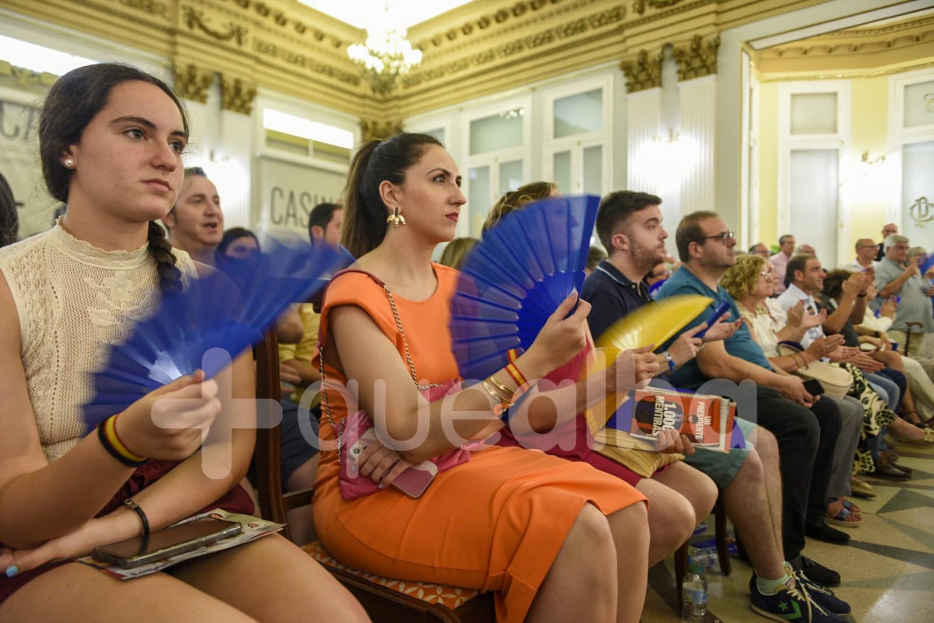 El expresidente del Gobierno José María Aznar ha abarrotado la sala principal del Casino Primitivo, con más de medio millar de afiliados y simpatizantes del Partido Popular en una calurosa tarde en Albacete donde los abanicos también son protagonistas.