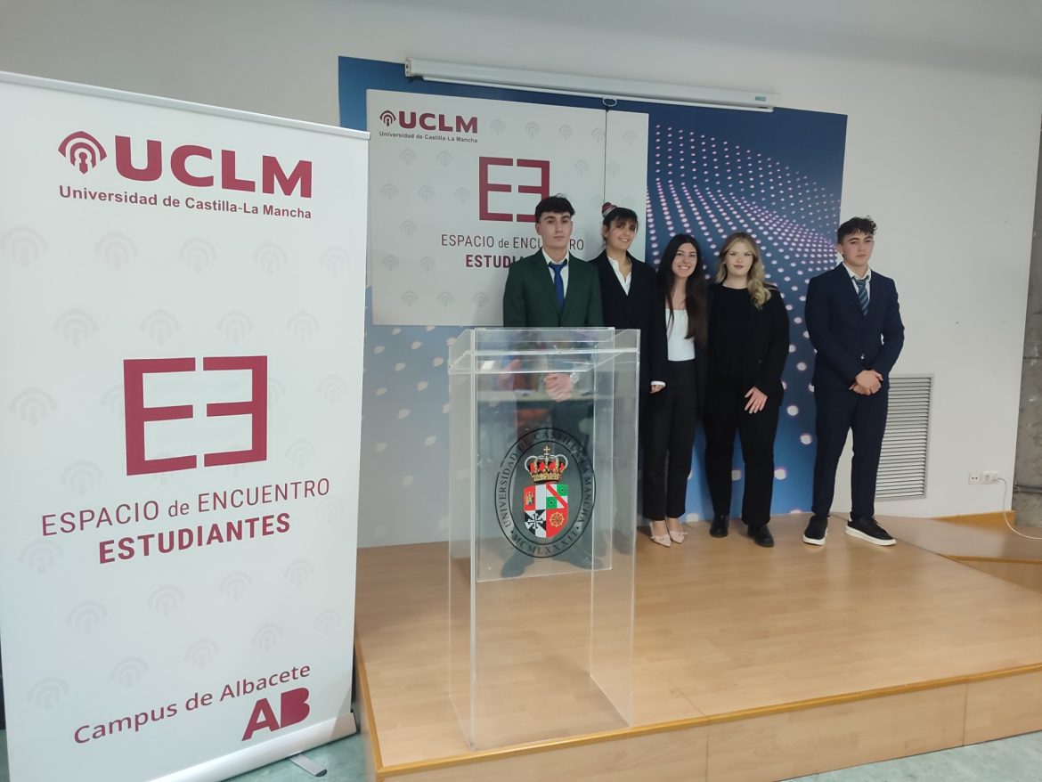 Leticia Moreno Marín, Carolina Navarro Menchero, Pedro Antonio Pérez Gil, Marta Rodrigo Rodríguez y Luis Tévar Lucas forman Usufructuarios. Estudiantes de Derecho, representan al campus de Albacete tras vencer a otros cinco equipos en la fase local.