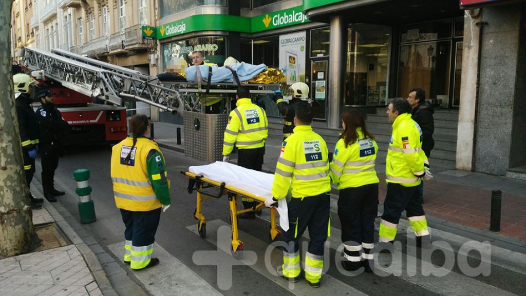 Los Bomberos de Albacete colaboran esta mañana con los servicios médicos en el traslado de una mujer impedida que sólo podía ser trasladada al Hospital tumbada y cuyo edificio, en el Paseo de la Libertad, no tiene ascensor. Además, por las escaleras el personal sanitario no podía bajar con la camilla, por lo que es necesario la ayuda de los Bomberos. La mujer había sufrido un accidente y solamente podía salir de su casa para ir al Hospital con ayuda de los Bomberos.