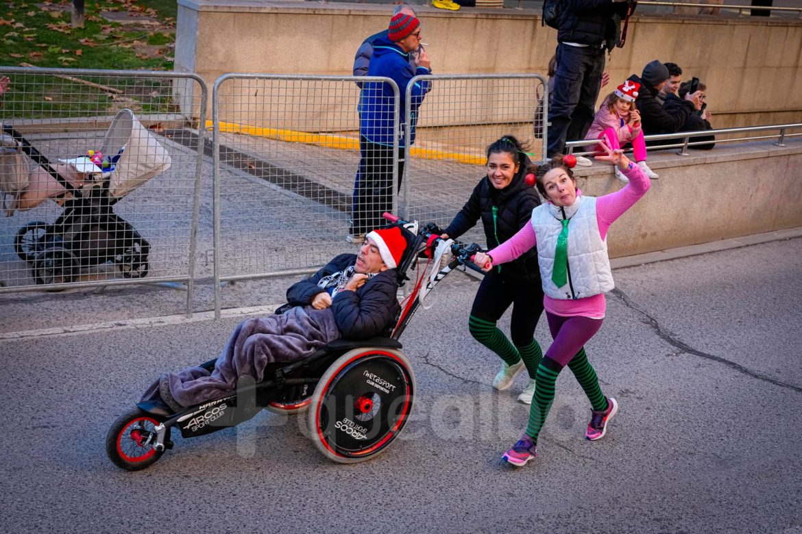 Antes del inicio oficial de la San Silvestre 2025 en Albacete, iniciaban la carrera algunos de los que serían los verdaderos y más entrañables campeones. Participantes en sillas de ruedas que pueden completar la prueba gracias a voluntarios, en este caso, en la historia de Juanmi, a voluntarias.