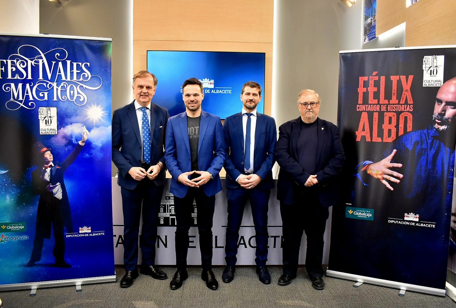 Los ‘Circuitos Artísticos Provinciales’ continúan recorriendo la provincia de la mano de Cultural Albacete, y durante el mes de mayo llegarán a más de 30 localidades con dos grandes espectáculos marcados en el marco del 40 aniversario de este Consorcio, que lleva cuatro décadas trabajando para llevar la cultura a cada rincón de la provincia, tal y como ha puesto en valor, durante su presentación, el diputado provincial de esta área, Miguel Zamora, junto al gerente de Cultural Albacete, Ricardo Beléndez; al director de la Fundación Globalcaja, Antonio González; y al gerente de Imaginalia, Miguel Muñoz.