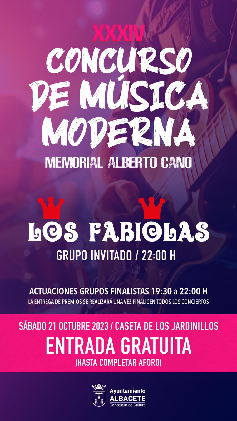 En dicha final podremos disfrutar del grupo albaceteño ‘Los Fabiolas’ formado en 1984, compuesto por Jesús Villar (guitarra), Juan Andrés Villena (voz), Miguel Guardia (bajo) y Pepe Belmonte (batería) inicialmente. Poco después se uniría Miguel Ángel Espinosa (guitarra).
