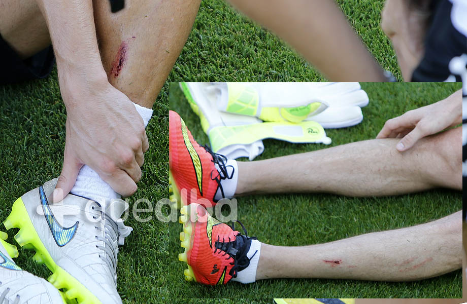 La temporada es dura, los jugadores se enfrentan a partidos con fuertes entradas que les dejan ‘heridas de guerra’ que tardan en cicatrizar. A Adriá Carmona, una de las nuevas incorporaciones del Albacete Balompié y al delantero Rubén Cruz les vimos volver al trabajo con estas heridas que suponemos que persisten desde la temporada pasada.