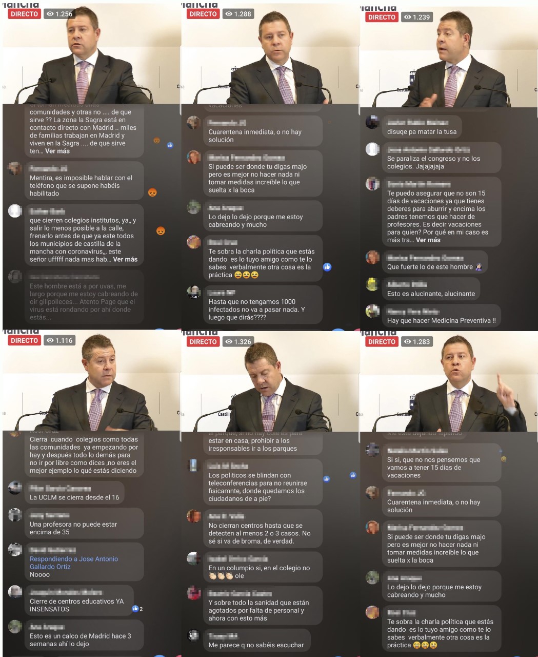 No han convencido las explicaciones que ha dado el presidente de la Junta, Emiliano García-Page, para no decretar el cierre de centros educativos en la región. Durante su rueda de prensa, que se podía seguir a través de las redes sociales, han sido muchos los comentarios de castellano-manchegos que no entendían algunas de sus declaraciones y que pedían el cierre de los centros.