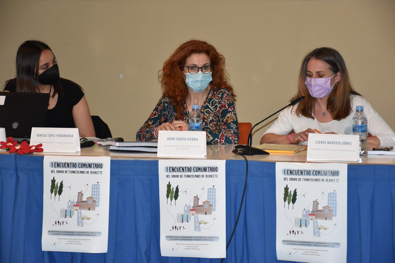 En la presentación de esta monografía y propuestas de mejora, han participado la referente institucional de la Asociación IntermediAcción en la provincia de Albacete, Llanos Montoya Gómez; la jefa de la unidad técnica de integración social, Monica Gil Andújar; la coordinadora del Proyecto de Intervención Comunitaria “Yo Soy Franciscanos”, Vanesa López Peñarrubia; el coordinador de los equipos de atención primaria, Alejandro Villena Ferrer; la directora del colegio Doctor Fleming, Conchi Bleda Tejero, la investigadora del Observatorio local de sostenibilidad-UCLM, Carmen Belén Martínez Escobar; un miembro del Colectivo 967, Javier Atiénzar Martínez; el coordinador de la Asociación IDEPA, Francisco Javier Villar Martínez, todos ellos integrantes de la que se ha denominado Mesa de Transformación Social.