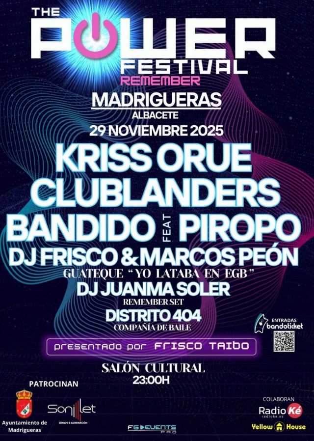 “The Power Festival Remember” nace en Madrigueras con el objetivo de recuperar la esencia de la música remember y crear una experiencia inmersiva para una generación que busca revivir los himnos de los 80, 90 y principios de los 2000. Cuenta con la colaboración de Ayto. de Madrigueras, Sonilet sonido e iluminación profesional, Yellow House Agency y la radio local “Radioké».