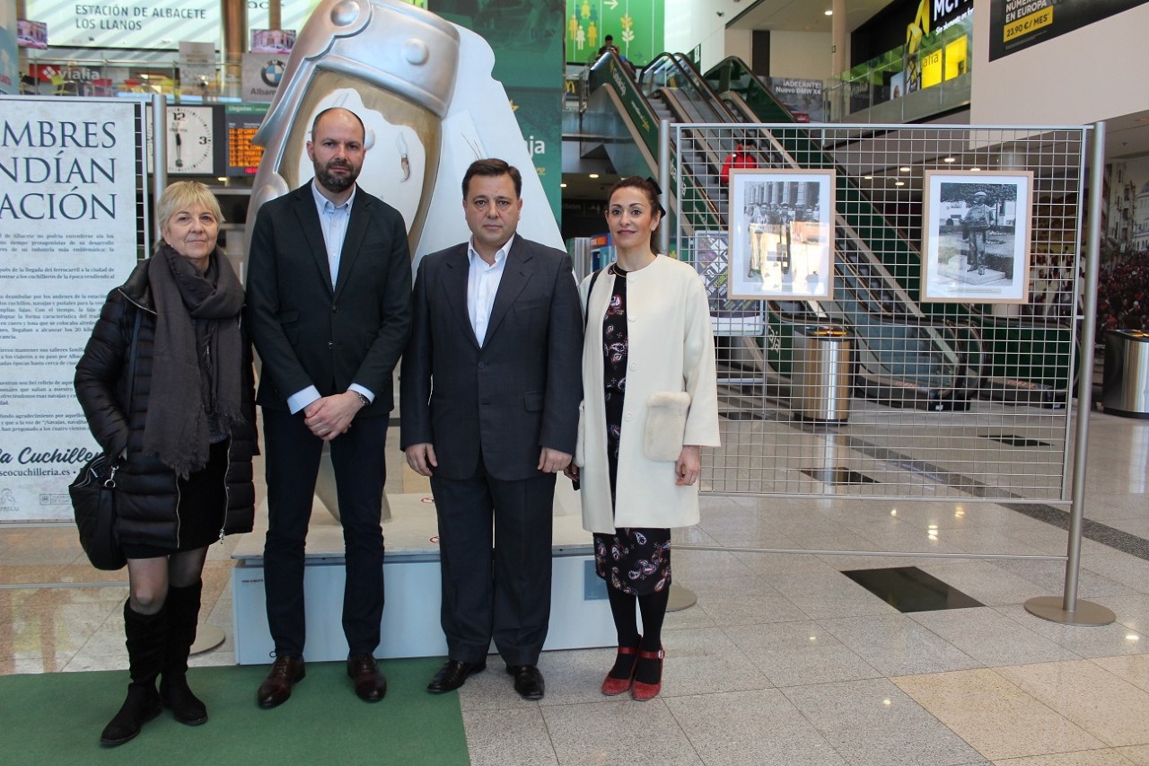 El alcalde de Albacete, Manuel Serrano, ha invitado a los albaceteños y viajeros con salida o destino la Estación Vialia ‘Los Llanos’ a visitar la exposición fotográfica ‘Aquellos hombres que vendían en la estación’ hasta el próximo 4 de marzo, ya que es “fiel reflejo de los vendedores de cinto que salían al encuentro de los viajeros en los andenes de la estación, ofreciendo navajas y cuchillos realizados en los talleres de nuestra ciudad”.