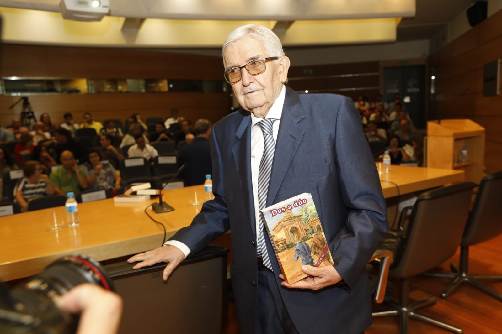 El empresario y escritor Manuel Torrecillas Sorio ha presentado este miércoles, en el Salón de Actos de Liberbank, en la Plaza de Gabriel Lodares, su segundo libro, Dos a dúo, una novela que recoge el enfrentamiento entre las dos vidas, la real y la soñada, un dilema -asegura el autor- presente en el día a día muchas personas.