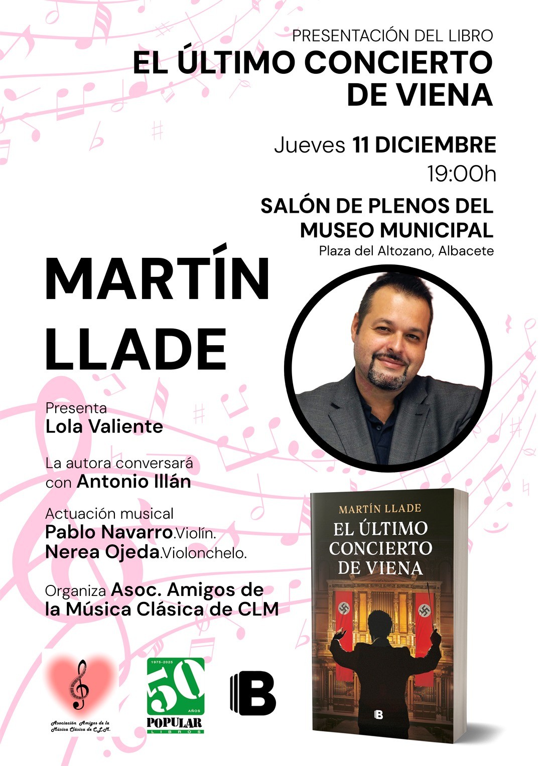 Así, el jueves 11 de diciembre, a las 19 horas, en el Salón de Plenos del Antiguo Ayuntamiento, presentarán el último libro del periodista musical más carismático de España, que retransmite todos los años para RTVE el Concierto de Año Nuevo desde Viena, Martín Llade.
