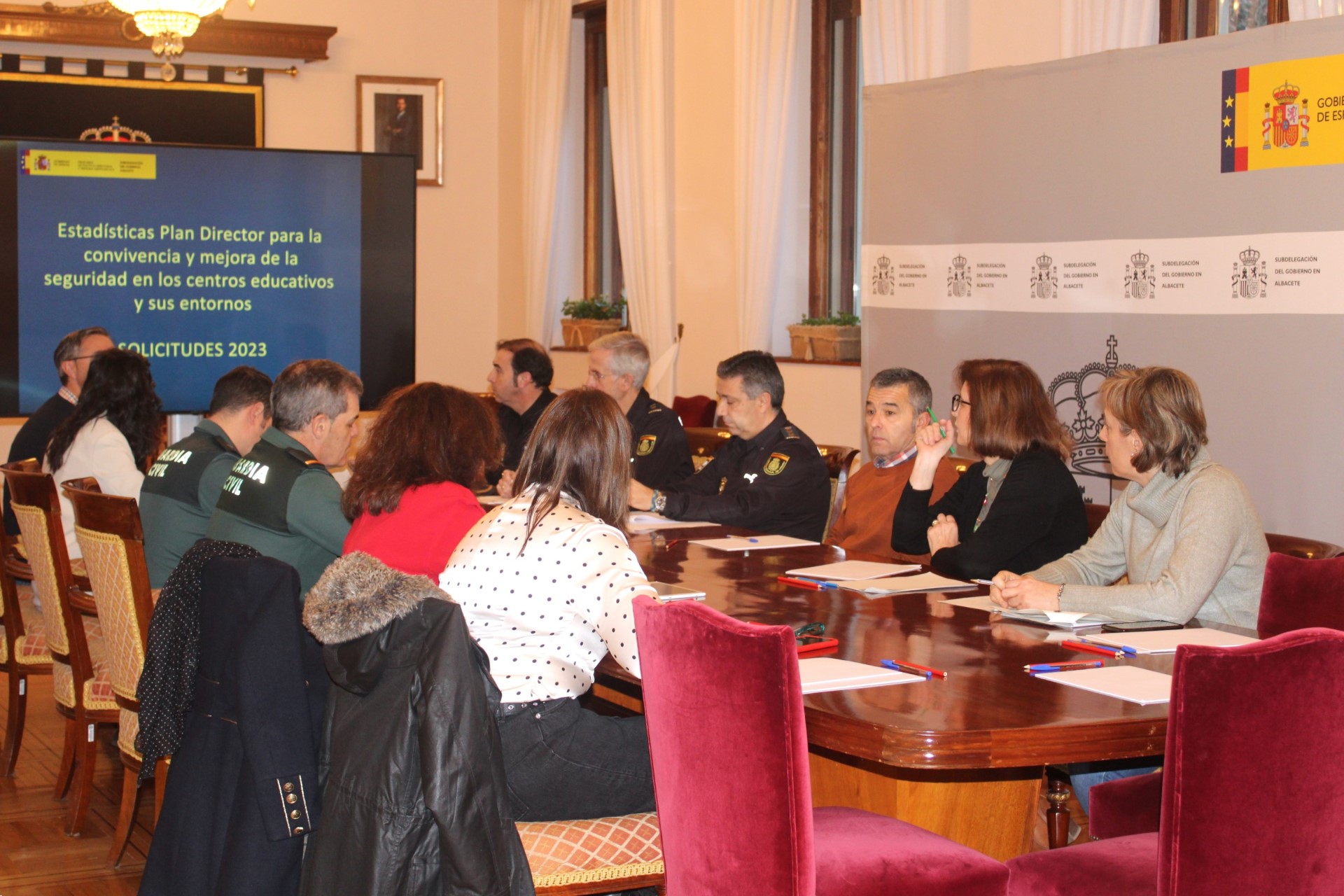 En la reunión han participado los coordinadores de dicho plan del Cuerpo Nacional de Policía y de la Guardia Civil, la secretaria Provincial y la asesora técnica docente de la Consejería de Educación, Cultura y Deportes, así como la vicesecretaria general de la Subdelegación, la jefa de la Unidad contra la Violencia sobre la Mujer y funcionarios de la sección de Autorizaciones Administrativas.