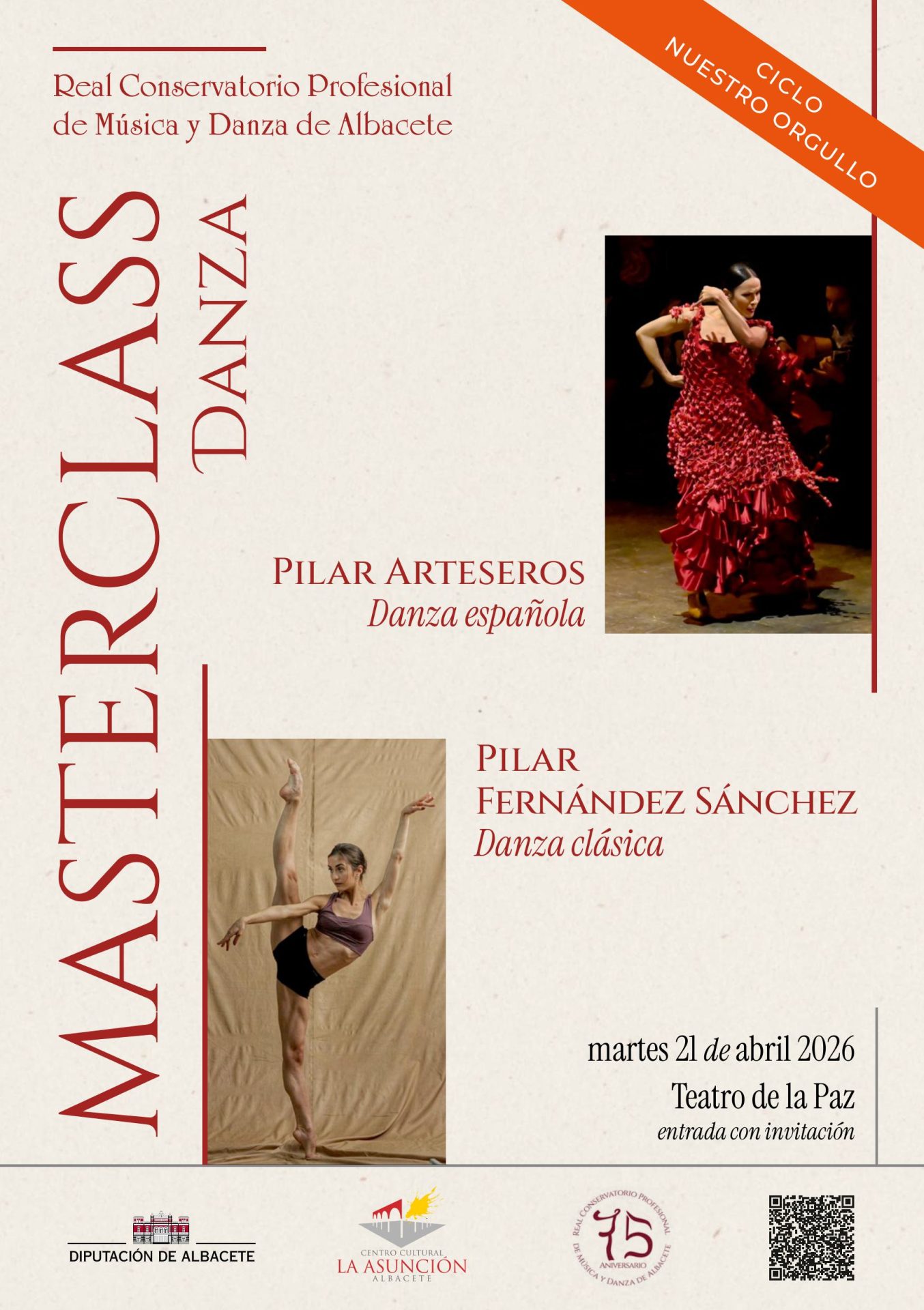 En el marco del Día Internacional de la Danza, que se conmemora cada 29 de abril, la Diputación de Albacete, a través de su Real Conservatorio Profesional de Música y Danza, ha organizado una Masterclass de Danza el próximo 21 de abril en el Teatro de la Paz, enmarcada en el ciclo ‘Nuestro Orgullo’ dentro de las actividades impulsadas con motivo del 75 aniversario del centro que se conmemora este 2026.