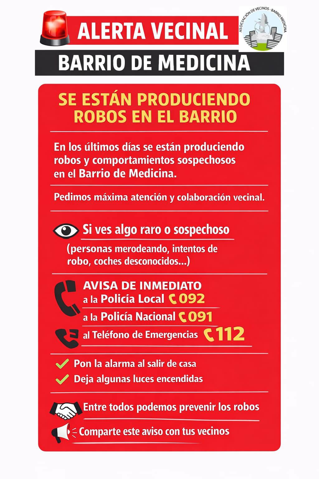 La Asociación de Vecinos del Barrio de Medicina de Albacete ha lanzado un aviso en redes sociales, este lunes, para indicar que se están produciendo robos, en la zona, durante estos últimos días.