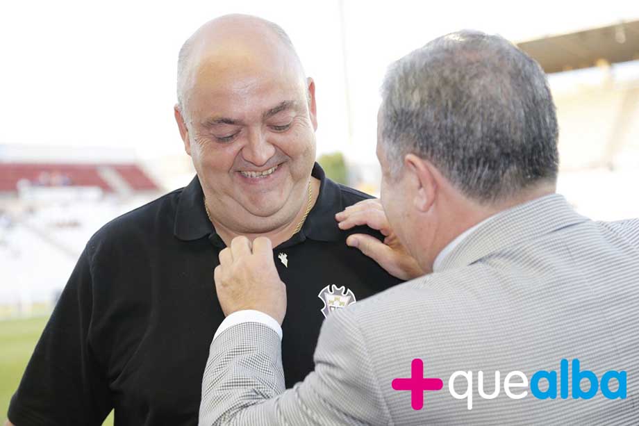 David, el utillero del Alba, ha recibido esta tarde un merecido homenaje en el Carlos Belmonte. Antes del partido frente al Huesca, recibía la insignia de oro del club, por sus 25 años de trabajo en la entidad. Muy emocionado, saltaba al terreno de juego con sus sobrinos, para recoger el galardón. Recibía el fuerte aplauso de la afición local. Un merecido reconocimiento para uno de los trabajadores más queridos del club, gran parte del Alba.