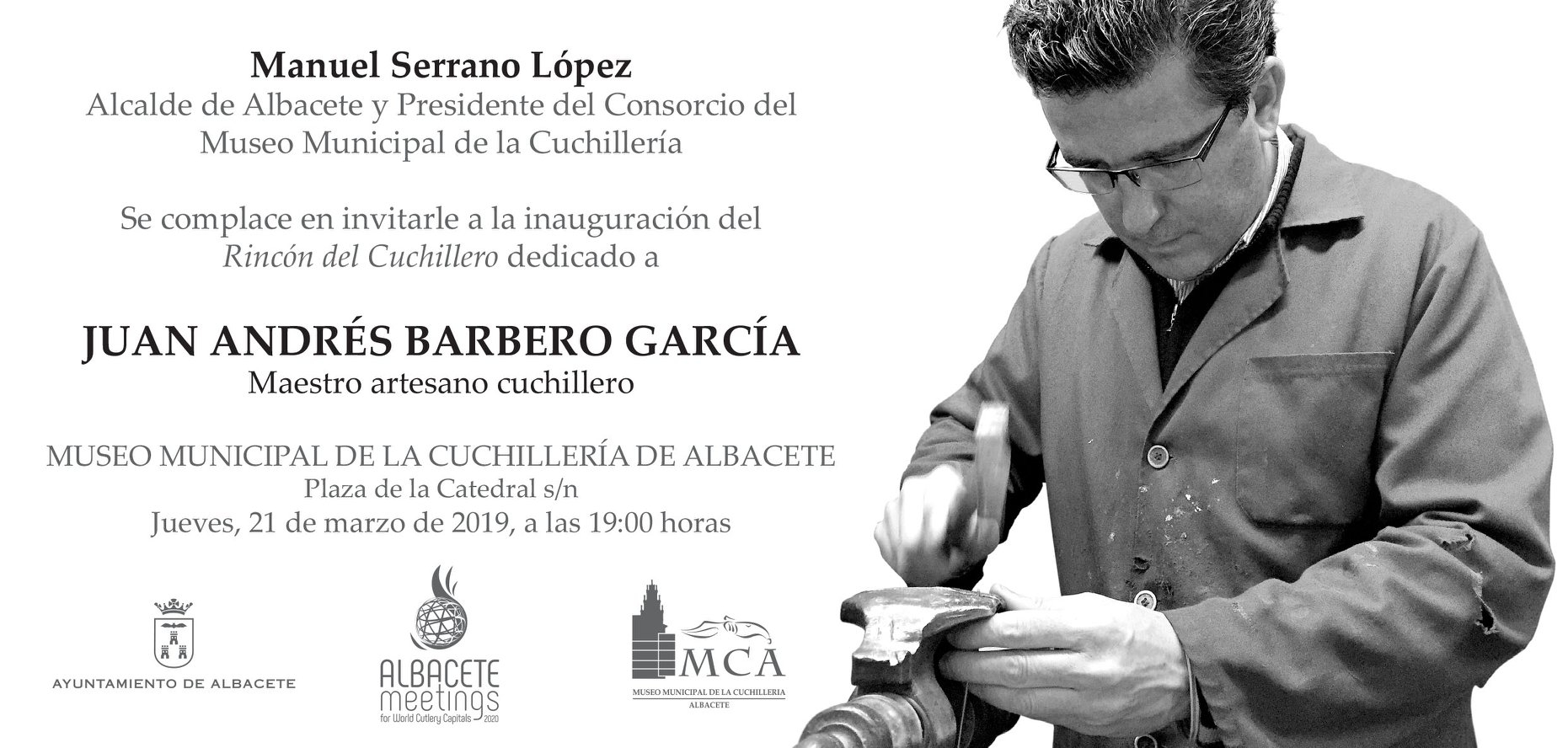El Rincón del Cuchillero, espacio de cáracter temporal que alberga el Museo Municipal de la Cuchillería de Albacete, inaugura este jueves 21 de marzo, una muestra sobre la obra y biografía de Juan Andrés Barbero García reconocido maestro artesano cuchillero y expresidente de APRECU durante 14 años.