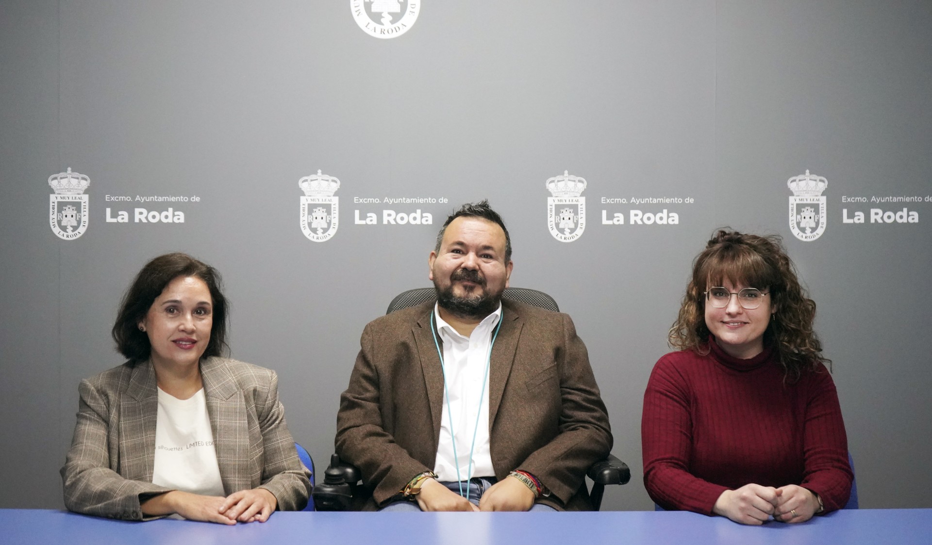 El alcalde de La Roda, Juan Ramón Amores, y la concejala de Turismo, María Ángeles García, junto con la técnica de turismo, Esther Collado, han presentado hoy en rueda de prensa el programa de actividades que el Ayuntamiento ha preparado para rendir ho-menaje a la figura de Manuel Blanco, creador de los célebres Miguelitos de La Roda, con motivo del centenario de su nacimiento.