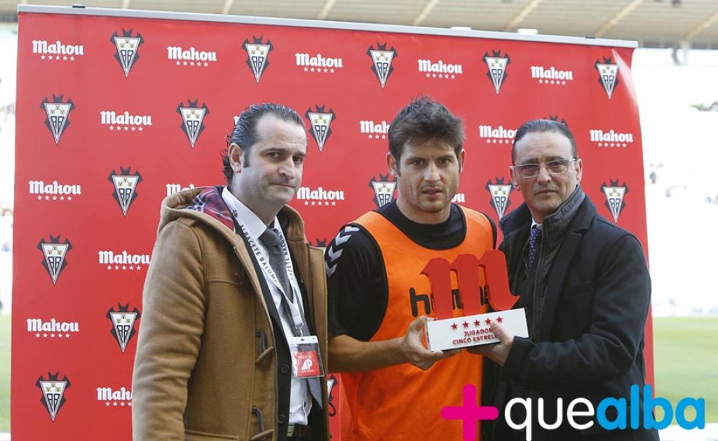 El partido del Albacete Balompié y el Valladolid ha tenido multitud de homenajes, como la entrega tras el calentamiento del equipo a Paredes de su trofeo Jugador 5 Estrellas de Mahou, elegido por la afición en el mes de noviembre.
