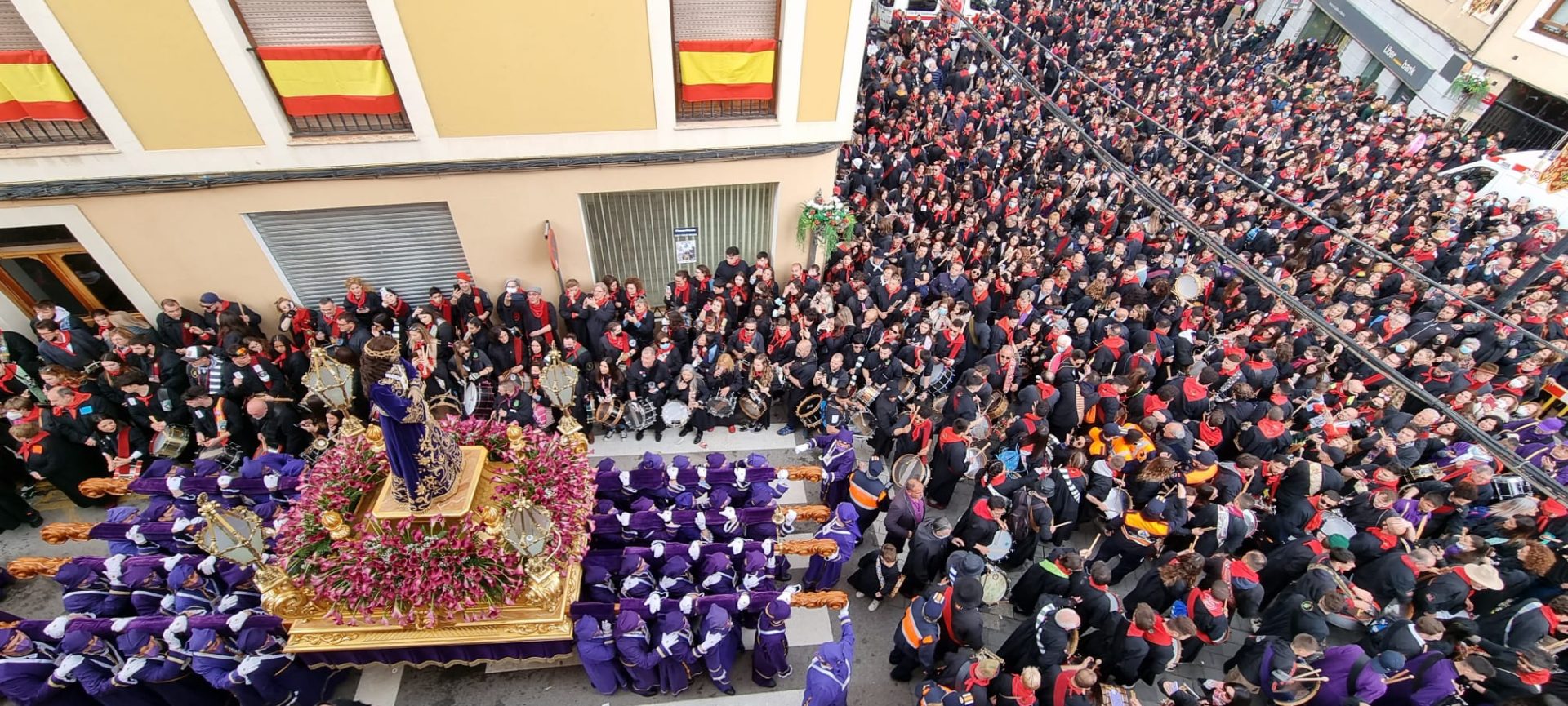 Además, se ha concedido la distinción al Tamborilero del Año a los sanitarios de Hellín, por su labor durante la pandemia. No ha faltado el tradicional paso entre los tambores del Medinaceli y el Ecce Homo por el Rabal, como ha informado el Ayuntamiento de la localidad.