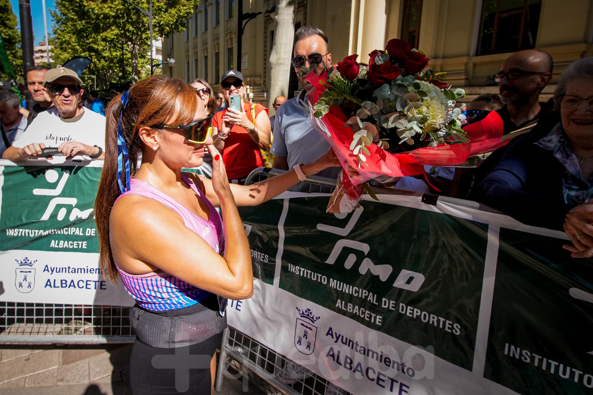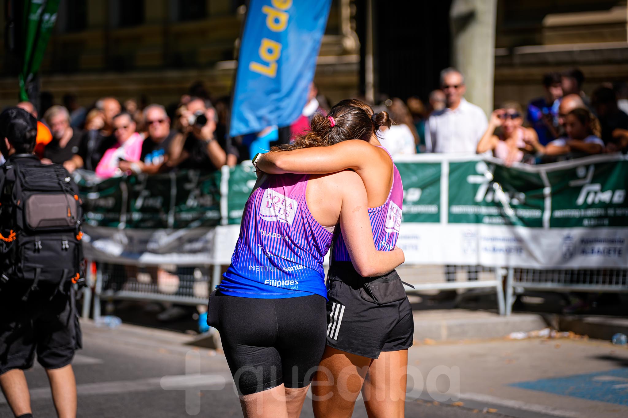 Y, al cruzar la línea de meta, emotivo el reencuentro de la periodista Alicia Martínez, a quien su pareja esperaba con un ramo de flores y con quien se ha fundido en un fuerte abrazo.