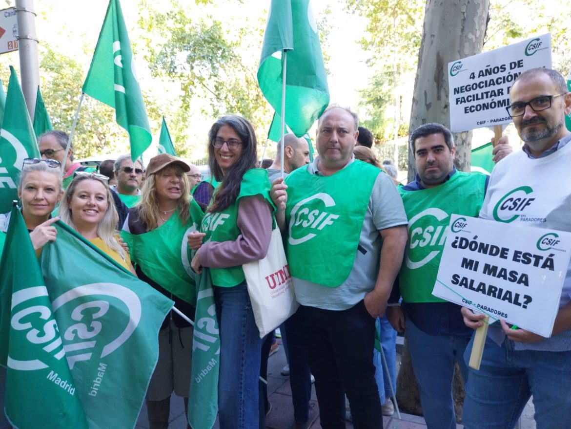 La Central Sindical Independiente y de Funcionarios (CSIF) se ha movilizado esta mañana frente a la sede nacional de Paradores en Madrid para denunciar la precariedad que sufre la plantilla de esta empresa pública compuesta por 5.500 trabajadores en toda España, cerca de medio millar en Castilla-La Mancha en sus nueve establecimientos (Alarcón, Albacete, Almagro, Cuenca, Manzanares, Molina de Aragón, Oropesa, Sigüenza y Toledo).