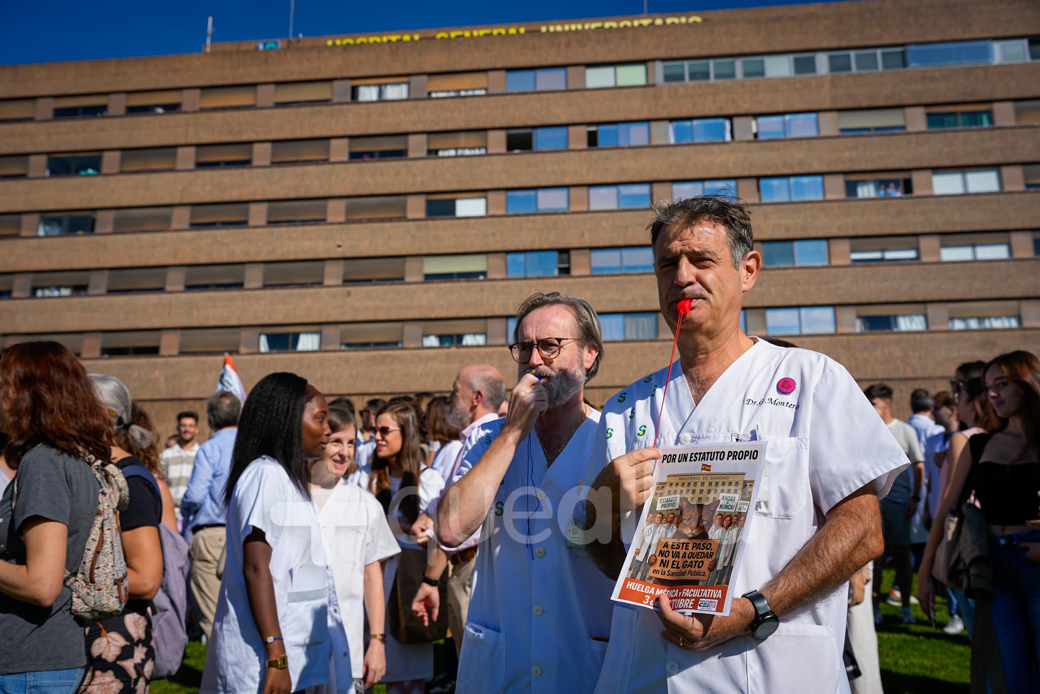 El sindicato CESM ha cifrado el seguimiento de la huelga en el 75%. Se han manifestado con cánticos como «Hora trabajada, hora cotizada» o «Este Estatuto lo vamos a parar» y han pedido la división de la ministra de Sanidad, Mónica García.