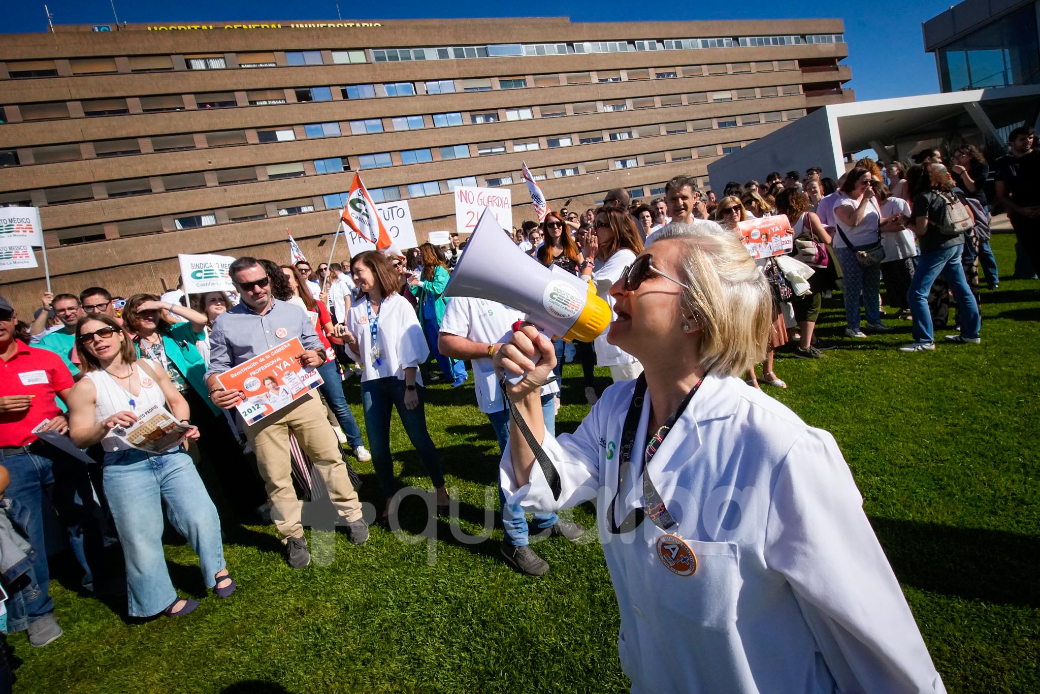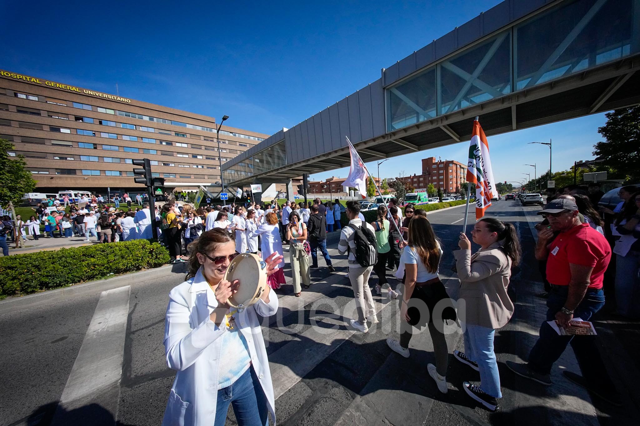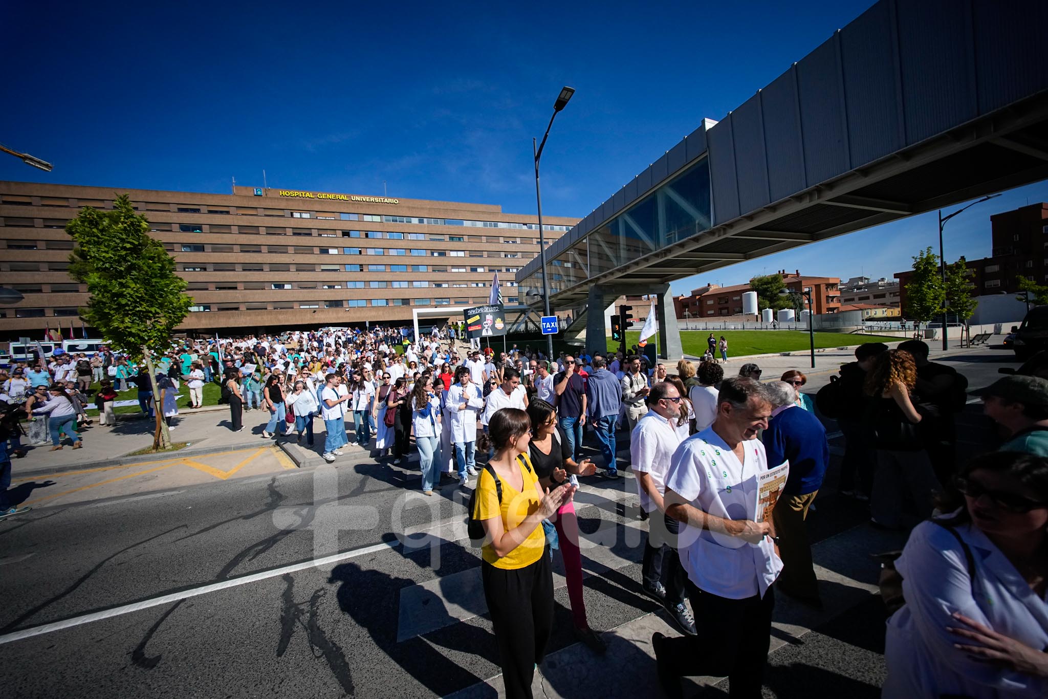 La protesta comenzaba en la puerta del Hospital General y ‘saltaba’ a la Circunvalación donde han retenido el tráfico, encontrando el apoyo de algunos conductores. Tras algo más de media hora y con el tráfico ya cortado, los protestantes se retiraban de la Cirvunalación.