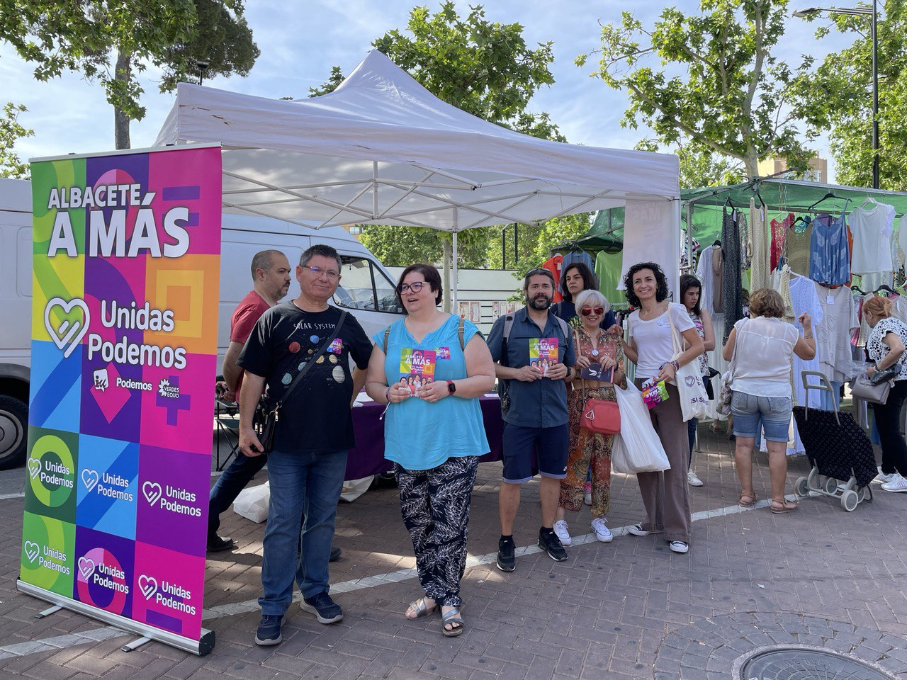 Unidas Podemos ha estado esta mañana en el mercadillo de Los Invasores trasladando a los vecinos de Albacete algunas de sus propuestas para que nuestra ciudad dé un salto cualitativo y se utilicen las políticas municipales para afrontar los grandes retos que tenemos como ciudad. La candidata de Unidas Podemos a la Alcaldía de Albacete, Nieves Navarro, ha señalado que «salimos a la calle con la ilusión y la emoción que implica cualquier campaña electoral, con muchas ganas de explicar a la gente nuestras propuestas, y sobre todo para decirles que si queremos un gobierno progresista en nuestra ciudad, Unidas Podemos es necesaria y determinantes para que la suma de la izquierda sea mayor que la de la derecha».