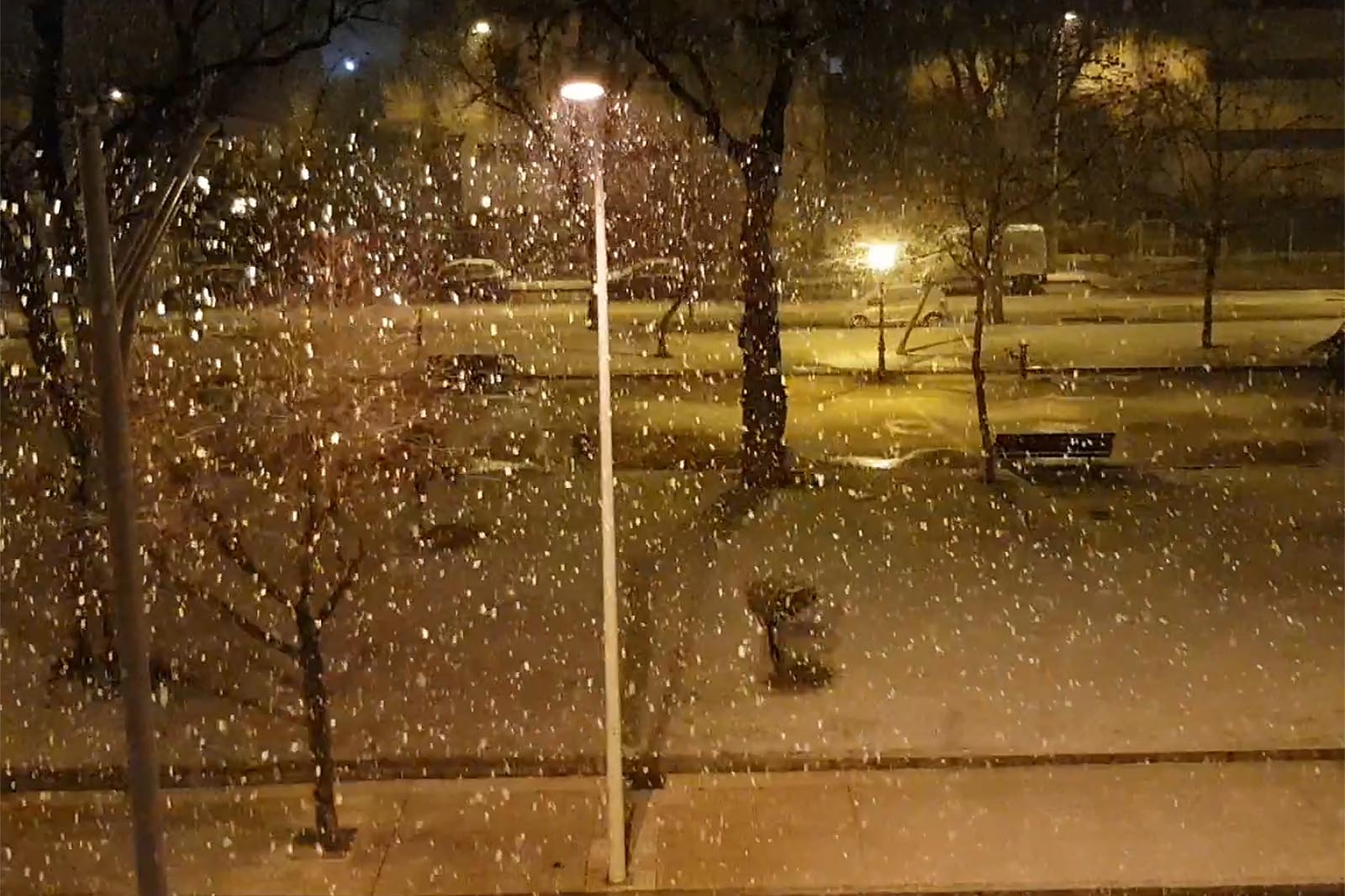 Sobre las 12:30 de la madrugada del domingo al lunes ha comenzado a nevar con intensidad sobre Albacete y ha cuajado, como se ve en el video por el Parque Lineal.