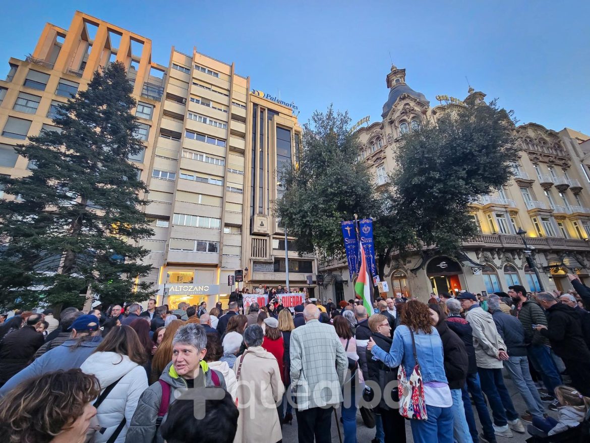 Numerosos albaceteños se han dado cita este jueves en la Plaza del Altozano de Albacete para mostrar su repulsa a la guerra y a la actitud del presidente de Estados Unidos, Donald Trump. Lo han hecho convocados por la Alianza contra el Odio de Albacete.