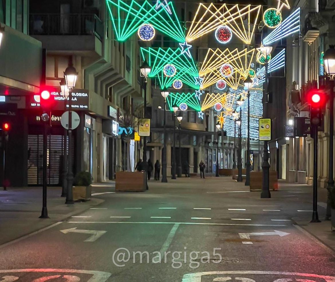 Imagen muy poco habitual, la del centro de Albacete prácticamente vacío alrededor de las diez de la noche. Pero, claro, esta no es una velada cualquiera, es Nochebuena y los albaceteños acostumbran a cenar en familia.