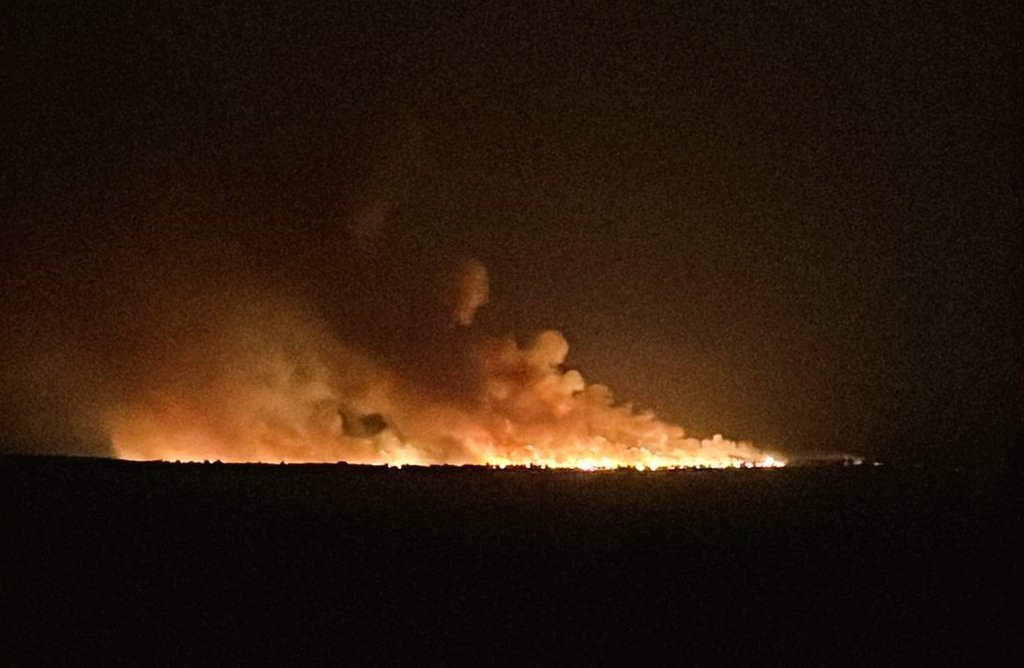 MeteoHellín ha publicado distintas imágenes del fuego, visible desde la autovía hacia Murcia.