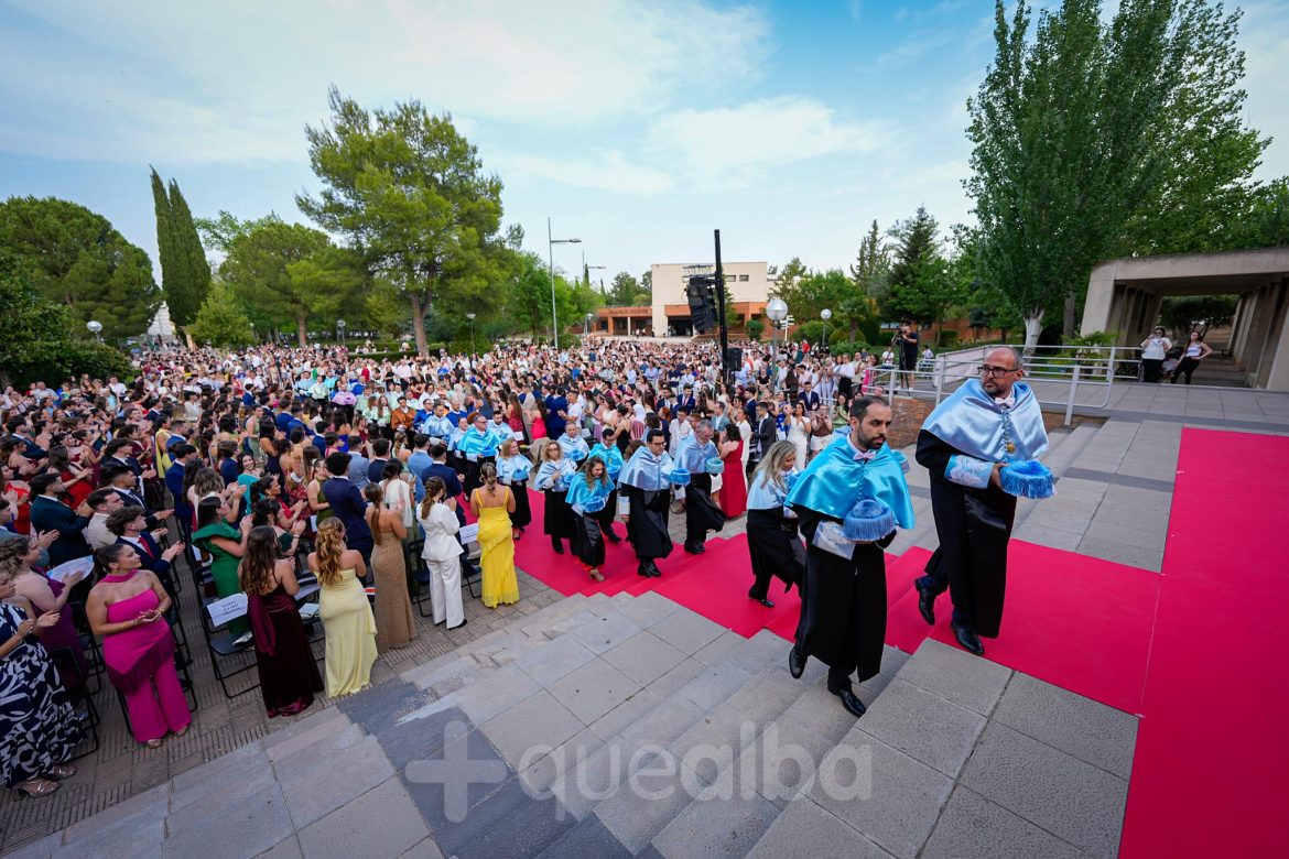La emoción era palpable entre quienes acompañaban a los recién graduados en una tarde-noche en la que no han faltado ramos de flores como homenaje por el logro conseguido tras varios años en la Facultad de Educación de Albacete.