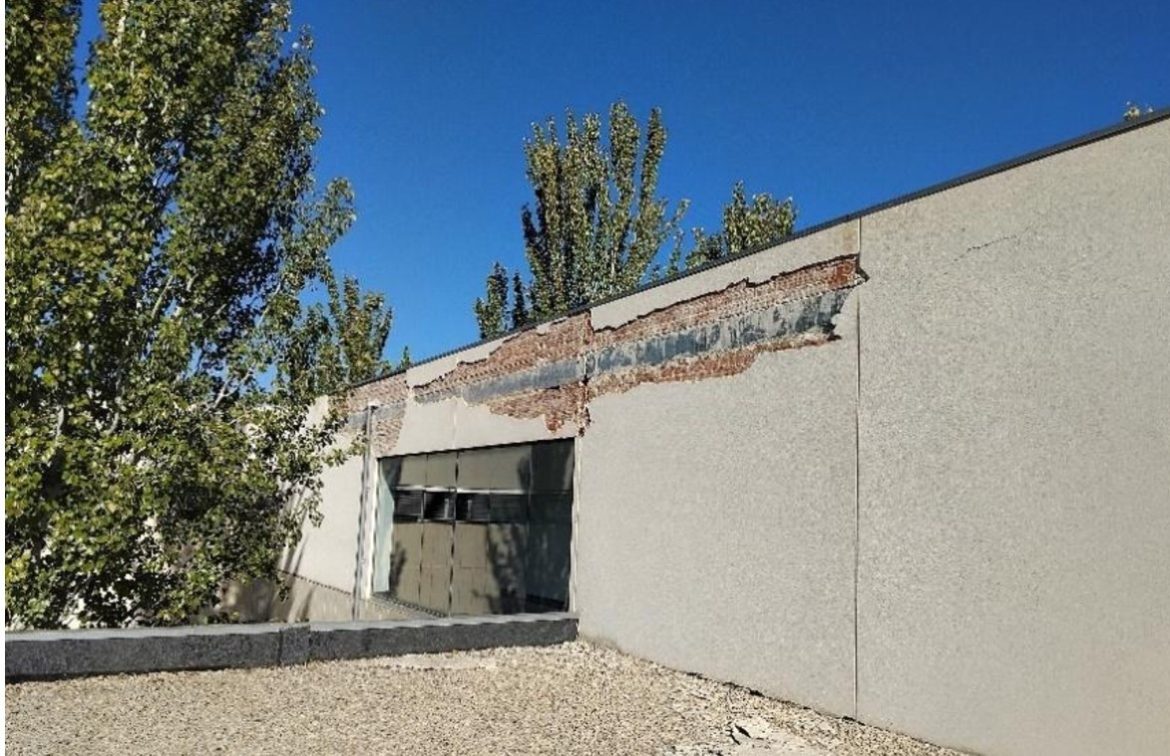 En la zona de la fachada cubierta con placas hay algunas de ellas partidas, con fisuras o con desprendimiento de material en los bordes, ya sea por vandalismo, dilataciones o vicios originales de la obra. Se trata de defectos puntuales con una incidencia menor en la obra, y se sustituirán unas 30 placas.
