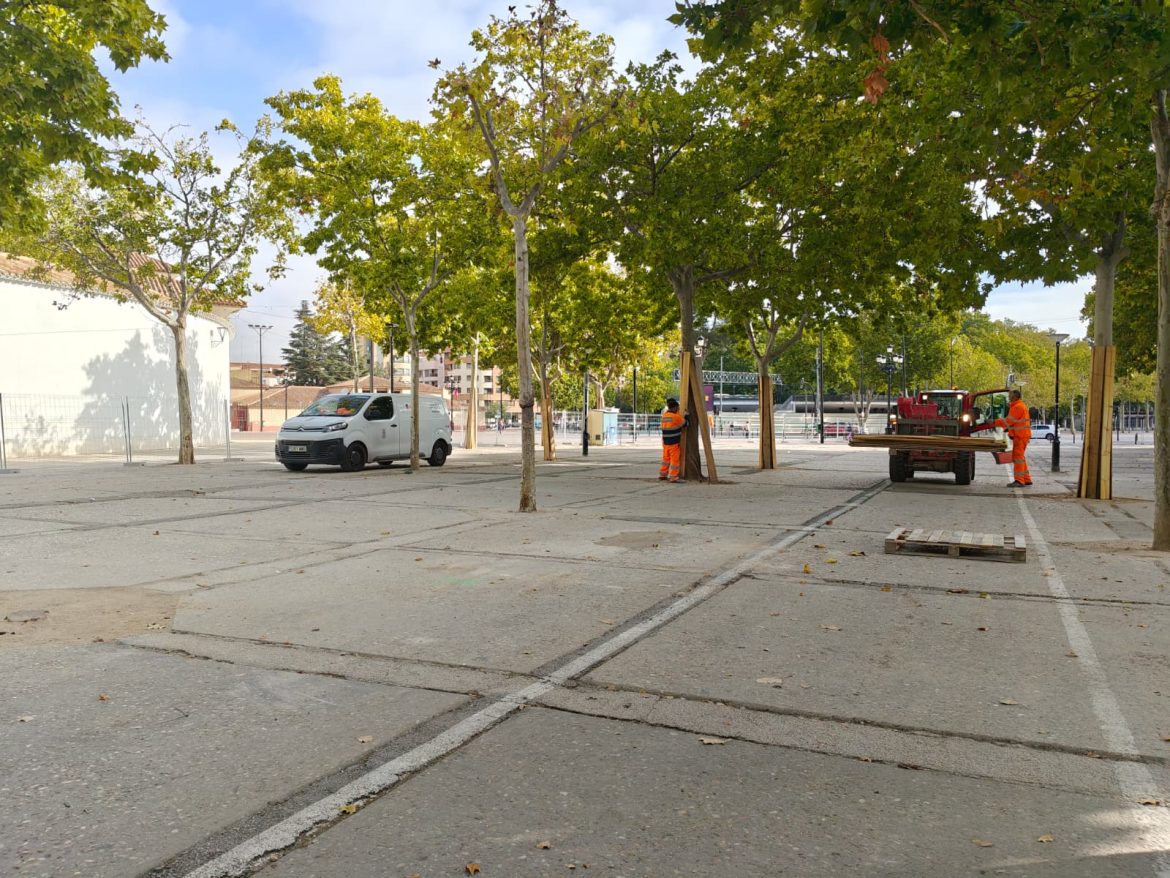 El Ayuntamiento ha iniciado los trabajos de vallado perimetral y protección de los árboles de la fase 1 de las obras de los Ejidos de la Feria, anunciadas la pasada semana por el alcalde de la ciudad, Manuel Serrano, junto a representantes de la Fava, de los barrios Feria, el Pilar, San Pablo, Fátima y Vereda de Jaén, de Cocemfe y la APEHT.