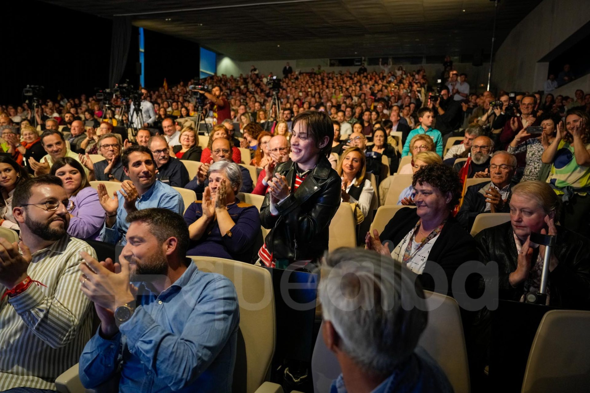 Page hacía sus anuncios para Albacete tras destacar el ejemplo de superación que supone la joven Cristina Landete, estudiante con discapacidad visual, que está en la sala junto a su madre y de quien el presidente ha destacado las lecciones de vida y superación que le ha dado cuando ha tenido la suerte de escucharla.