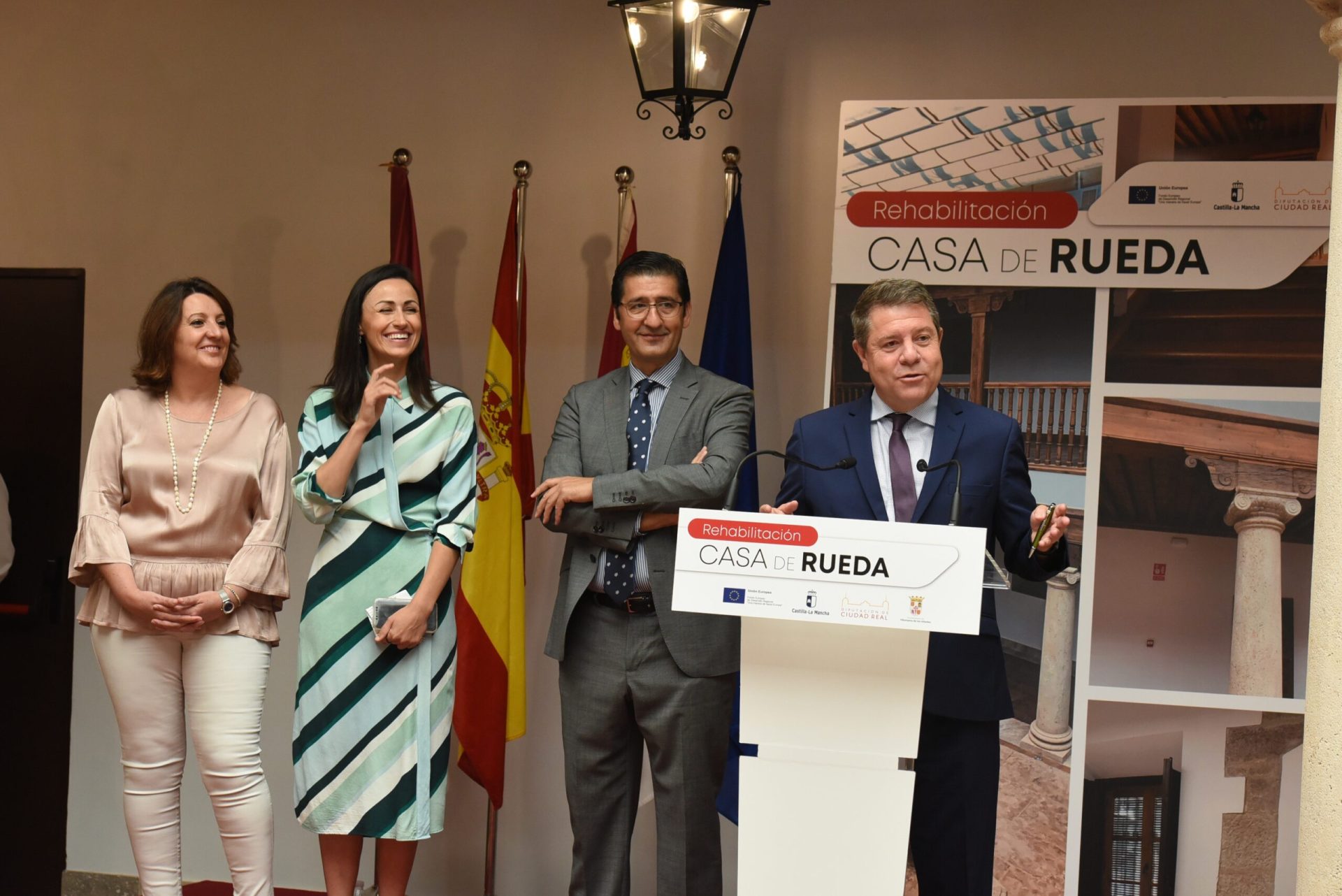 El presidente de Castilla-La Mancha hacía este anuncio desde la recién rehabilitada ‘Casa de Rueda’ en la localidad de Villanueva de los Infantes, junto a la consejera de Economía, Empresas y Empleo, Patricia Franco; el presidente de la Diputación provincial de Ciudad Real, José Manuel Caballero; y la alcaldesa infanteña, Carmen Montalbán.