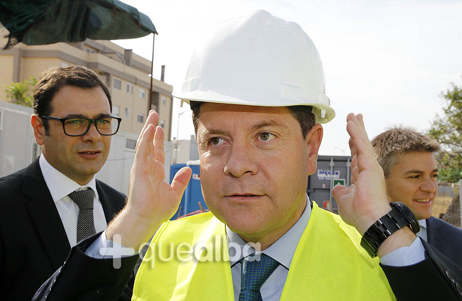 El presidente de la Junta, Emiliano García-Page, ha iniciado esta mañana su ‘gira’ por la Feria de Albacete y lo hacía con una primera visita a las obras de la futura Facultad de Farmacia del Campus de Albacete que ha dejado algunas curiosidades como que, al llegar a la entrada del centro donde iban a hacer las declaraciones, se han encontrado con algunos escombros que habían caído del tejado, consecuencia de las lluvias torrenciales de estos días.