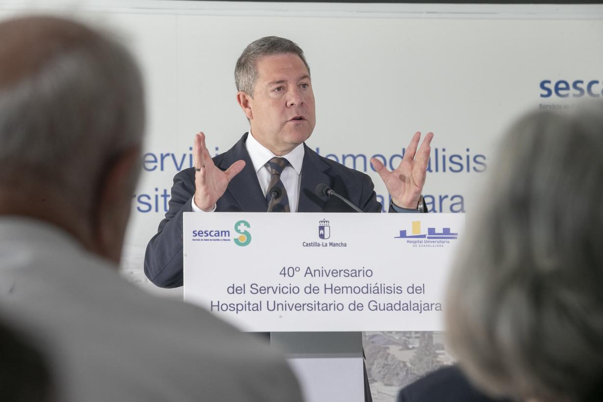 Así lo ha puesto de relieve durante el acto conmemorativo del 40º aniversario del Servicio de Hemodiálisis del Hospital Universitario de Guadalajara, un centro hospitalario inaugurado en 1982 y que terminó albergando, dos años después, este servicio en la capital guadalajareña. En este sentido, el presidente autonómico ha ensalzado la labor realizada en estas cuatro décadas “para que la gente no solo salga curada, sino que salga animada, contenta” y “con la sensación de que una vida de enorme esfuerzo ha merecido la pena”.