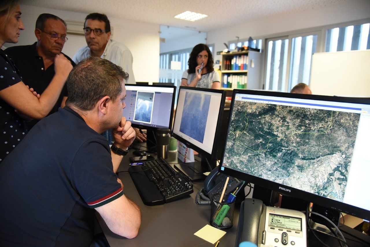 El presidente en funciones de Castilla-La Mancha visita el puesto de control del incendio registrado en el entorno de la ciudad de Toledo, tras anular su agenda de esta tarde en Albacete.