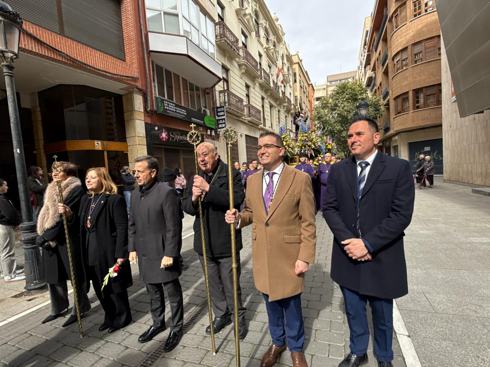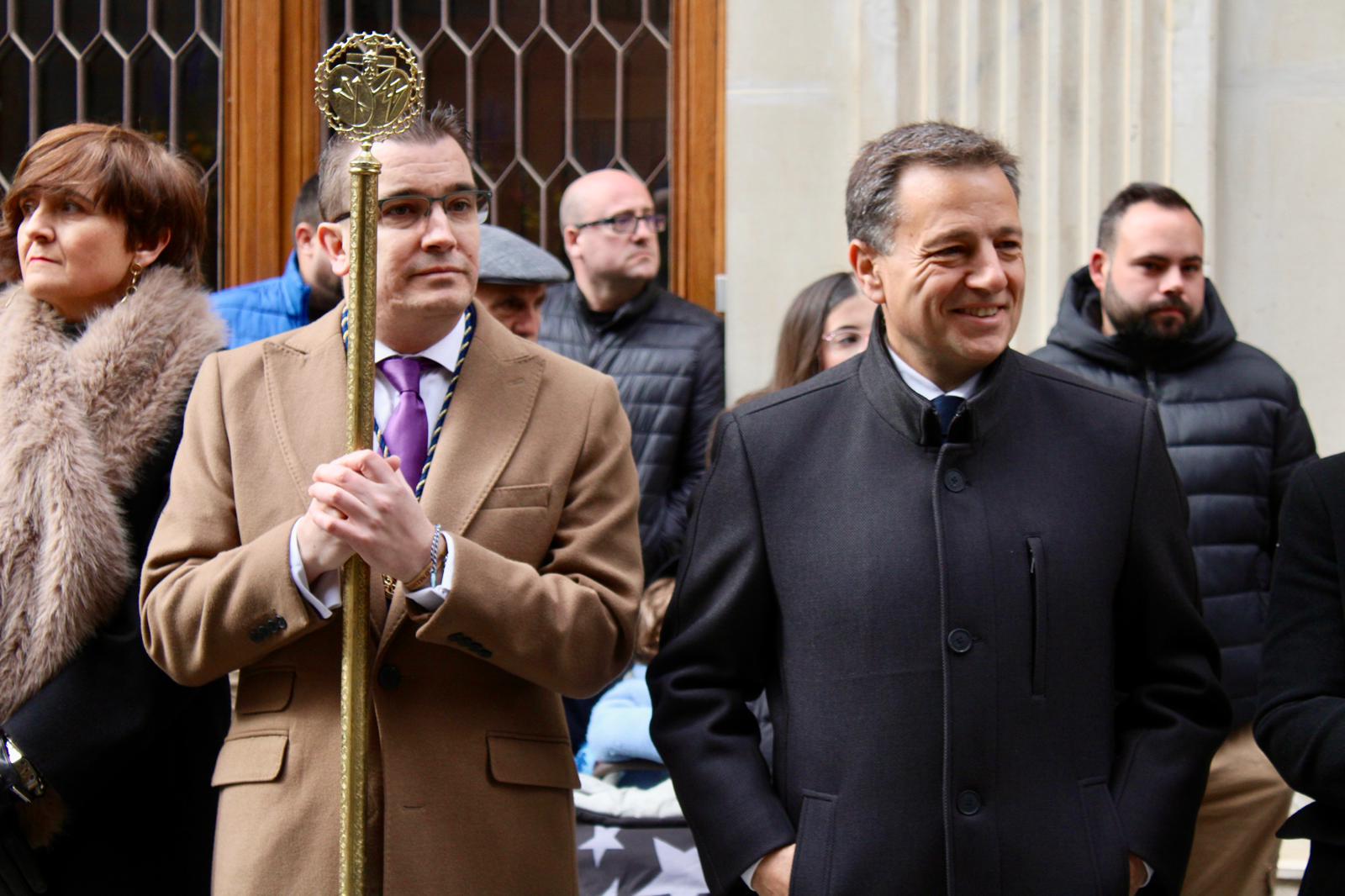 Manuel Serrano se ha manifestado de este modo durante su participación en la Procesión del Encuentro de Jueves Santo, en la que ha acompañado a la Imagen de Nuestro Padre Jesús Nazareno, desde la Catedral hasta del Altozano, junto a los concejales del Equipo de Gobierno, Elena Serrallé y Pascual Molina.