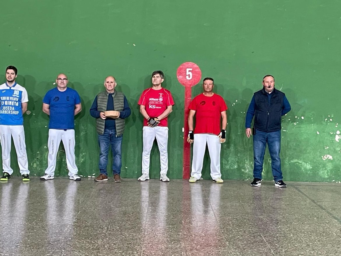 En la primera partida,  Ortiz III  y Juan Miguel (Chapi)  del equipo de La Gineta, ganaban 22 a 16 al equipo de ‘colorao’,  formado por Pedro Campana, de Alcalá del Júcar; y el Moreno, de Villalpardo, que quedó campeón en la primera edición, ambos pertenecientes al club de Villalpardo, habiendo juado un partido bastante igualado hasta el tanto 15 a15. También habían empatado a  7 a 7  y 14 a 14, a destacar el zaguero azul Ortiz III que ha restado muy bien el saque muy fuerte del delantero de rojo, el Moreno.