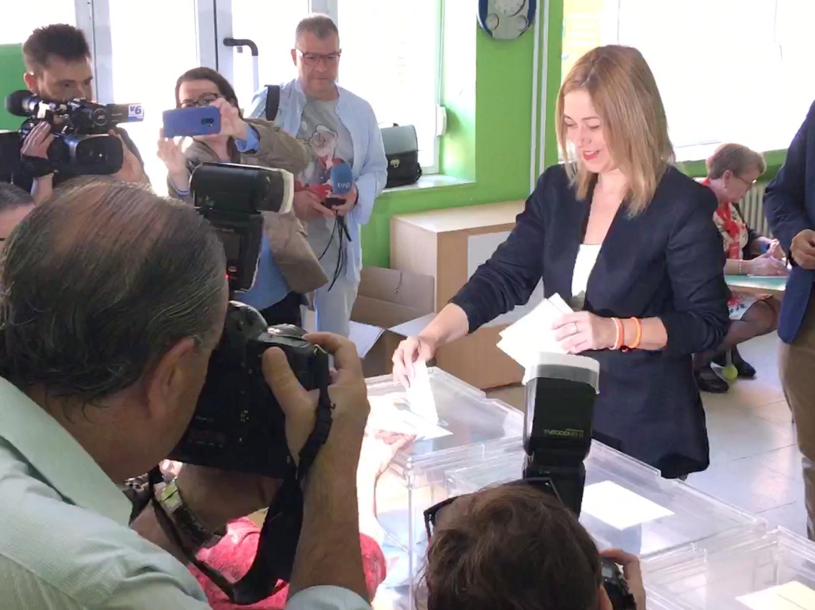 Ha acudido a votar acompañada de compañeros de partido como el candidato a la Alcaldía, Vicente Casañ.