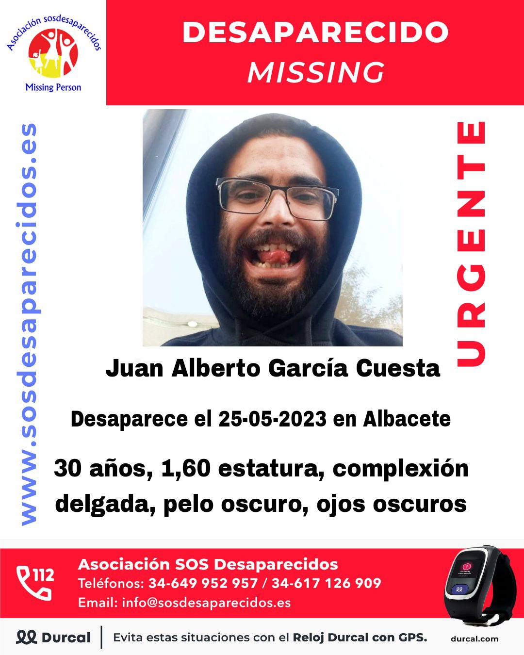 Se trata de Juan Alberto García Cuesta y SOS Alerta Desaparecidos ha difundido su imagen y sus datos por si alguien tuviera alguna información que pudiera ser de ayuda para dar con su paradero.