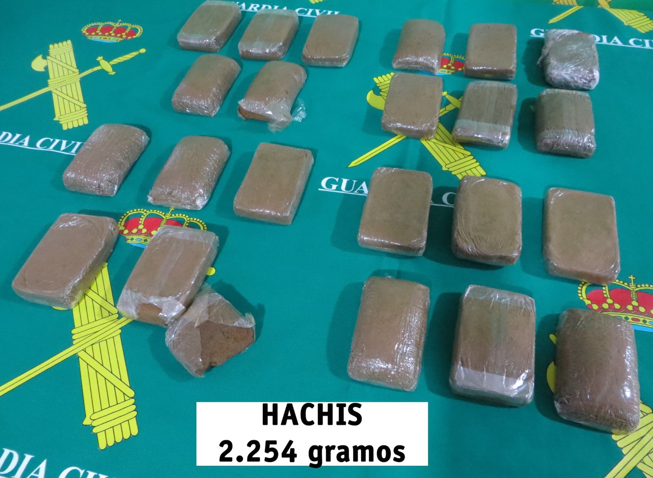 En el vehículo que conducía el detenido se localizaron 2.254 gramos de hachís, de los que podrían haberse obtenido 4.508 dosis de este estupefaciente.